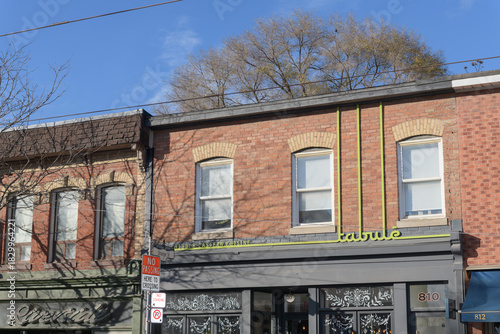 Obraz premium exterior building facade and sign of Tabule, a Middle Eastern restaurant, located at 810 Queen St E, Toronto