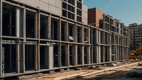 Fototapeta premium Exterior construction hoarding city architecture building.
