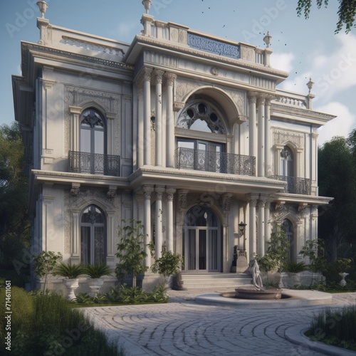 Obraz premium Exterior design of palace 2 floors AI Generative Art