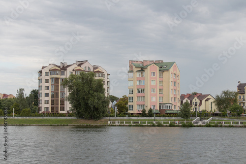 © daisy_y, Fototapeta premium Exterior of a residential building near upper lake, Kaliningrad, Russia.