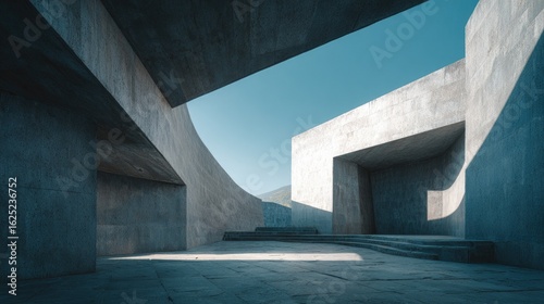 Obraz premium Exterior of an abstract architectural marvel with interlocking concrete volumes and bold geometric angles