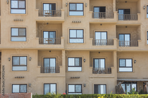 Fototapeta premium Exterior of an apartment block construction in tropical resort