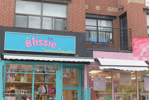 © eugen, Fototapeta premium exterior of 78 and 80 Kensington Av with signs and merchandise, Toronto