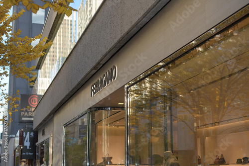 © eugen, Naklejka premium exterior of Ferragamo, a shoe store, located at 131 Bloor St W, Suite 102, Floor 1, The Colonnade on Bloor, Toronto
