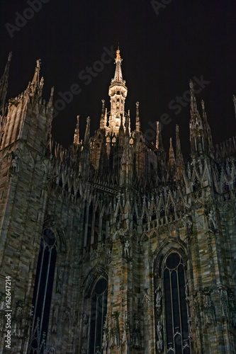 © serghi8, Fototapeta premium Exterior of the "Duomo" of Milan with its Gothic spheres at night.