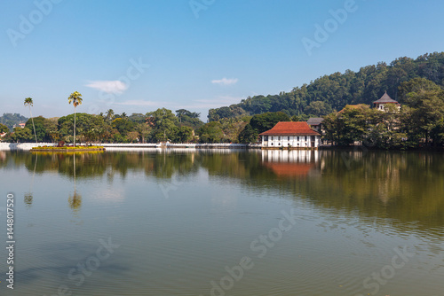 © worldwidephotoweb, Fototapeta premium Exterior of the old royal bath house along the Kandy lake in Kandy, Sri Lanka, Asia