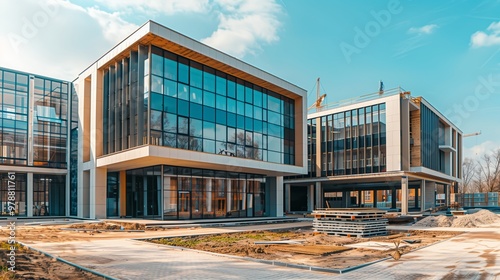 © Wolfilser, Fototapeta premium Exterior view of a modern designed office building in construction