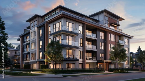 Fototapeta premium Exterior view of modern apartment building offering luxury rental units :...