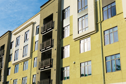 Fototapeta premium Exterior view of typical multifamily mid-rise residential building used...