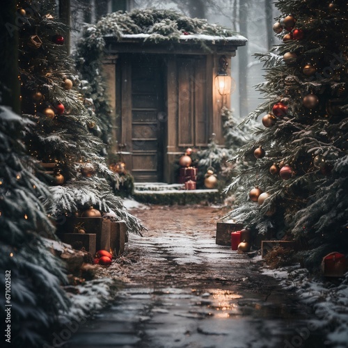 Fototapeta premium exteriors of the house are decorated for Christmas or New Year's holiday,...