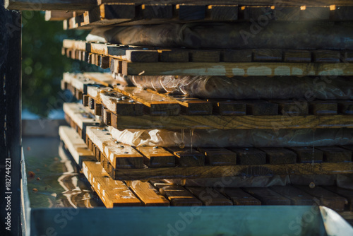 © Gatis, Naklejka premium Extracting apple juice manually, DIY press