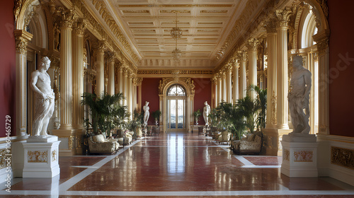 © Agi, Fototapeta premium Extravagant Reception Hall in French Second Empire Style Featuring Gilded Moldings and Greek Statues in Hyper-Realistic Painting