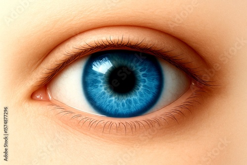 © Piyush, Obraz premium Extreme close-up of a realistic human blue eye with intricate iris texture, eyelashes, and skin detail, macro photography of eye anatomy for medical, science, vision, and biometric concepts