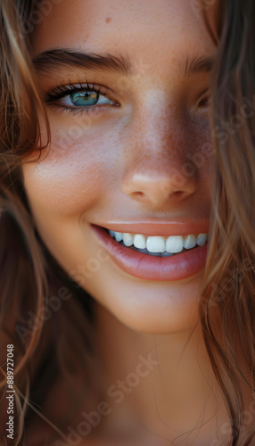 © Ivan, Fototapeta premium Extreme close-up of a smiling young woman where only part of her face is visible