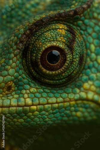 © Sebastian, Fototapeta premium Extreme close-up of chameleon eye with detailed textured scales