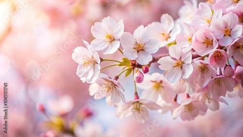 © chaiwat, Obraz premium Extreme close-up of cherry blossom against light colored background