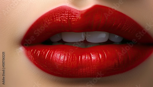 © V Art, Obraz premium Extreme close-up of the red lips of a beautiful young woman.