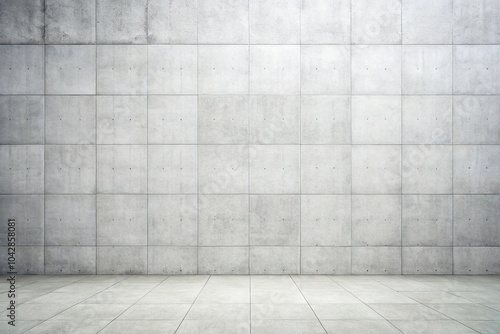© yuwaree, Fototapeta premium Extreme close up of white textured concrete wall and tiled floor