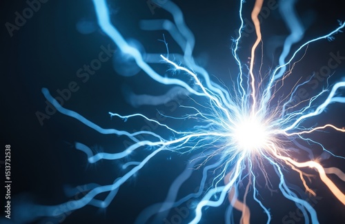 © miss irine, Obraz premium Extreme close-up static electricity spark. Fine energy flow details, crisp white, electric blue colors. Conceptual abstract tech science image for design, education, research.