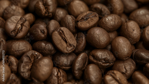 Naklejka premium Extreme Closeup Macro Shot of Freshly Roasted Coffee Beans