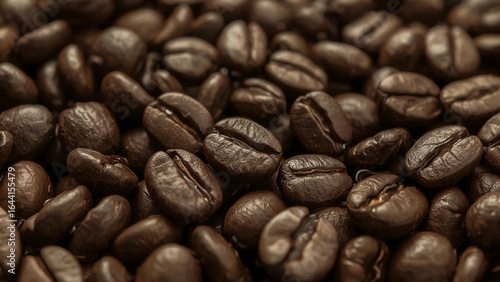 Fototapeta premium Extreme Closeup Macro Shot of Freshly Roasted Coffee Beans, Capturing Detailed Texture