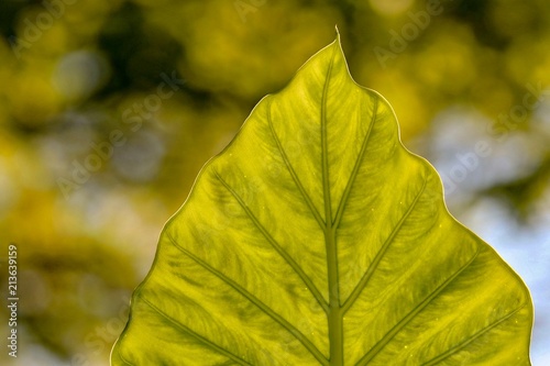Obraz premium Extreme Closeup of a Lime Green Leaf and Bokeh Background