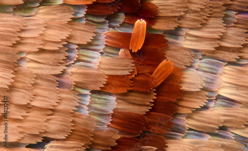 © constantincornel, Naklejka premium Extreme magnification - Butterfly wing scales, Vanessa Atalanta, 20x