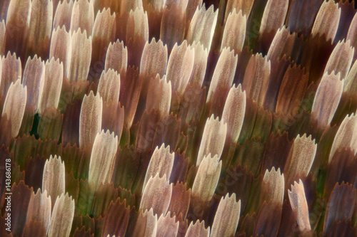 Naklejka premium Extreme magnification - Butterfly wing scales, Vanessa Atalanta, 10x