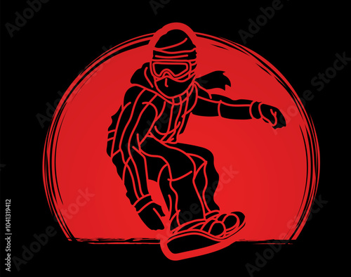 Fototapeta premium Extreme Sport Snowboard Player Snowboarder Action Cartoon Graphic Vector