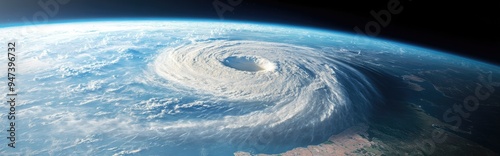 Fototapeta premium Extremely detailed and realistic high resolution 3D cartoon rendering of a hurricane impacting a coastal area captured from space