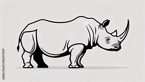 © SecretCanvas, Fototapeta premium Eye-Catching Rhinoceros with Line Art Horn Logo for Bold Branding