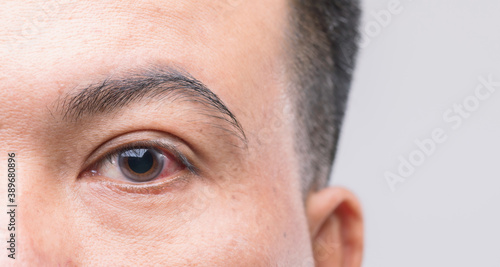 Fototapeta premium Eye irritation concept : Red eye of man, conjunctivitis eye or after getting dust