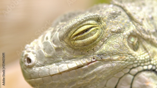 © Vital9c, Fototapeta premium Eye of an iguana close up. Iguana big lizard basking in the sun