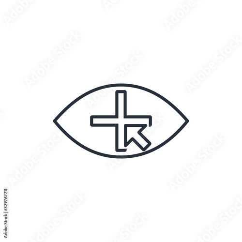 © vektor67, Obraz premium Eye plus. View and news. Vector linear icon on a white background.
