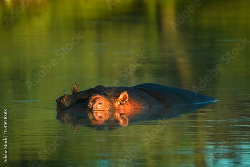 © Emily Tubbesing, Fototapeta premium Eye to eye with a Hippo (Hippopotamus amphibius.)