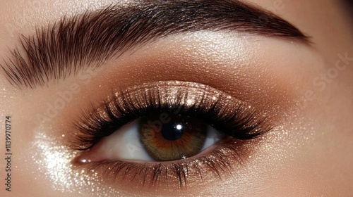 © Suphawan, Obraz premium Eye with dramatic volume lashes, surrounded by soft, glowing skin, creating a luxurious and elegant vibe.