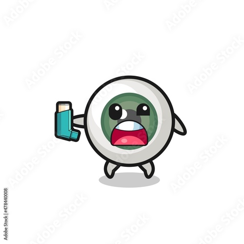Obraz premium eyeball mascot having asthma while holding the inhaler