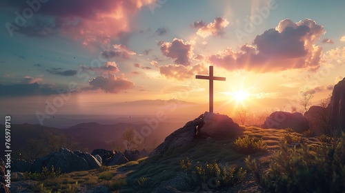 Fototapeta premium Eyecatching Christianity and nature unite in stunning mountain landscape