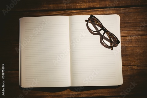 Fototapeta premium Eyeglasses on book at desk