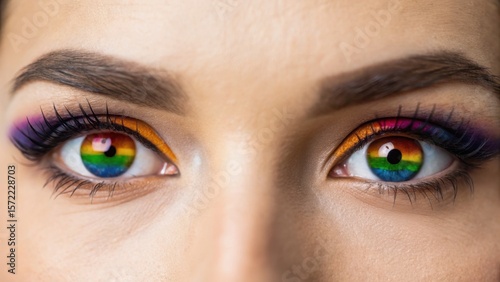 Obraz premium Eyes featuring vibrant rainbow colors with artistic makeup, showcasing a...