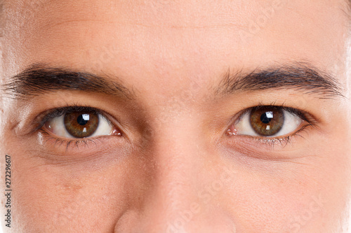 Fototapeta premium Eyes of a young latin man face eye macro shot person people