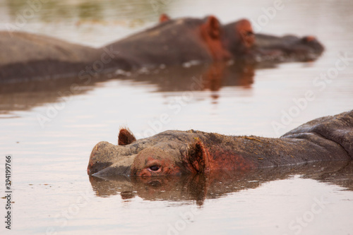 © pop_gino, Fototapeta premium Eyes of hippo in water Africa