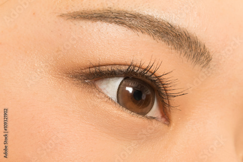 Fototapeta premium アジア人 つけまつげとブラウンカラーコンタクトレンズ Eyes of the Asian woman