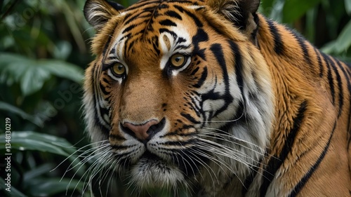 © KAThakshala, Fototapeta premium Eyes of the Jungle: The Intensity of a Malayan Tiger’s Golden Gaze