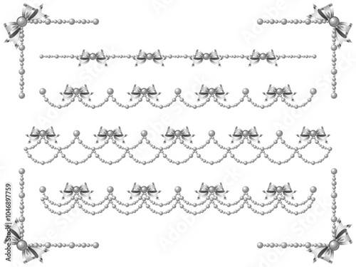 © qwe, Obraz premium パール、石、リボンFセット、三色2銀