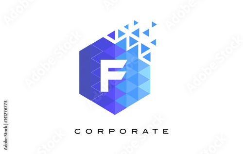 © ankreative, Obraz premium F Blue Hexagonal Letter Logo Design with Mosaic Pattern.