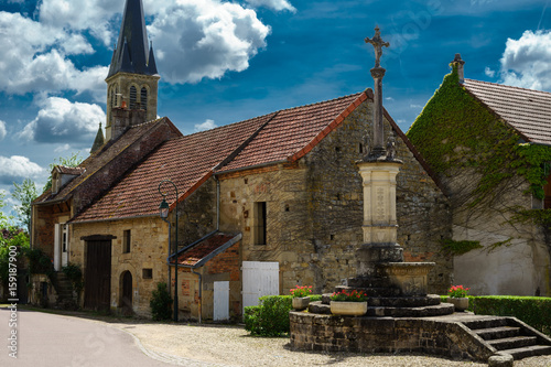 Fototapeta premium F, Burgund, Sully, Kirche unter sommerlichem Wolkenhimmel
