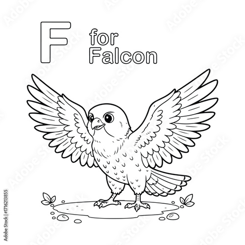 © Mst Ayat, Obraz premium F for falcon isolated on white background, bird illustration for kids learning