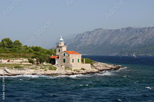 Fototapeta premium Fährüberfahrt am Leuchtturm Sucuraj vorbei auf die Insel Hvar