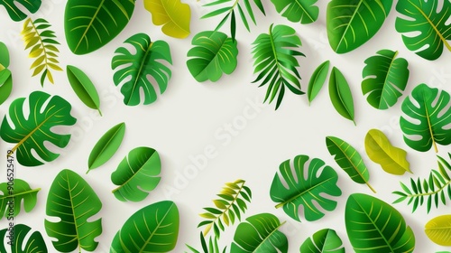 Fototapeta premium Fabric background, tropical leaves pattern, flat design illustration